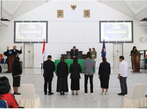 Dalam sambutannya, Rektor UKIM menyampaikan apresiasi kepada pejabat demisioner atas dedikasi yang telah diberikan, sekaligus menitipkan pesan strategis kepada para Kepala Biro yang baru dilantik. Rektor menekankan bahwa tantangan pengelolaan perguruan tinggi saat ini menuntut sinergi lintas biro yang solid, terutama dalam menghadapi tuntutan standar akreditasi terbaru dan transformasi layanan digital.