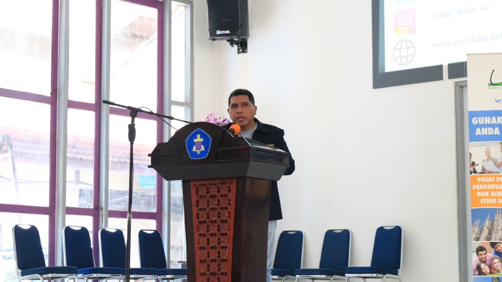 Rektor UKIM diwakili oleh Wakil Rektor I, Dr. Elia Radianto, M.Si., dalam sambutannya memberikan apresiasi atas terselenggaranya kegiatan ini. “Sejauh pengetahuan saya, kegiatan semacam ini apalagi dengan mendatangkan langsung Staf Kedubes Italia, baru pertama kali dilakukan di UKIM. Karena itu, saya mengharapkan tanggapan positif sivitas akademika UKIM menyambut peluang-peluang studi yang disampaikan nanti,” demikian pernyataan Radianto. Sementara itu, Ketua YAPERTI GPM, Prof. Dr. Ir. J. (Bob) Mosse, M.Sc., memberikan arahan yang jelas mengenai pentingnya kegiatan-kegiatan seperti ini dilakukan secara reguler bagi sivitas akademika UKIM. “Sudah saatnya UKIM bergerak lebih jauh untuk membangun sinergi di bidang pendidikan dengan lembaga-lembaga luar negeri, baik universitas maupun kedubes-kedubes negara-negara mitra di Indonesia. Studi di luar negeri tidak hanya memberikan kesempatan untuk belajar dari para peneliti dan pemikir internasional tapi juga membuka wawasan yang lebih luas mengenai kebudayaan bangsa-bangsa lain. Untuk itu memang UKIM harus memberi perhatian kepada penguatan kompetensi berbahasa asing, terutama Bahasa Inggris,” demikian penegasan Mosse yang disambut dengan tepuk tangan para peserta.